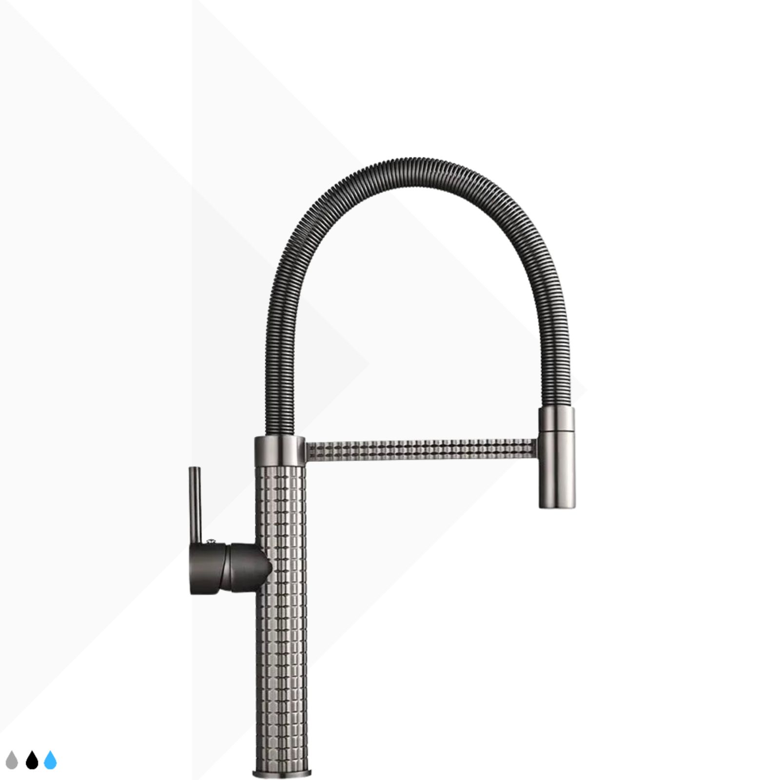 A Torneira Monocomando Gourmet Varsóvia é uma torneira em aço escovado, moderna e robusta, projetada para uso em cozinhas e copas. Possui mangueira flexível de longo alcance e bica móvel de fácil encaixe, facilitando assim a lavagem de alimentos e utensílios de forma mais prática e controlada.