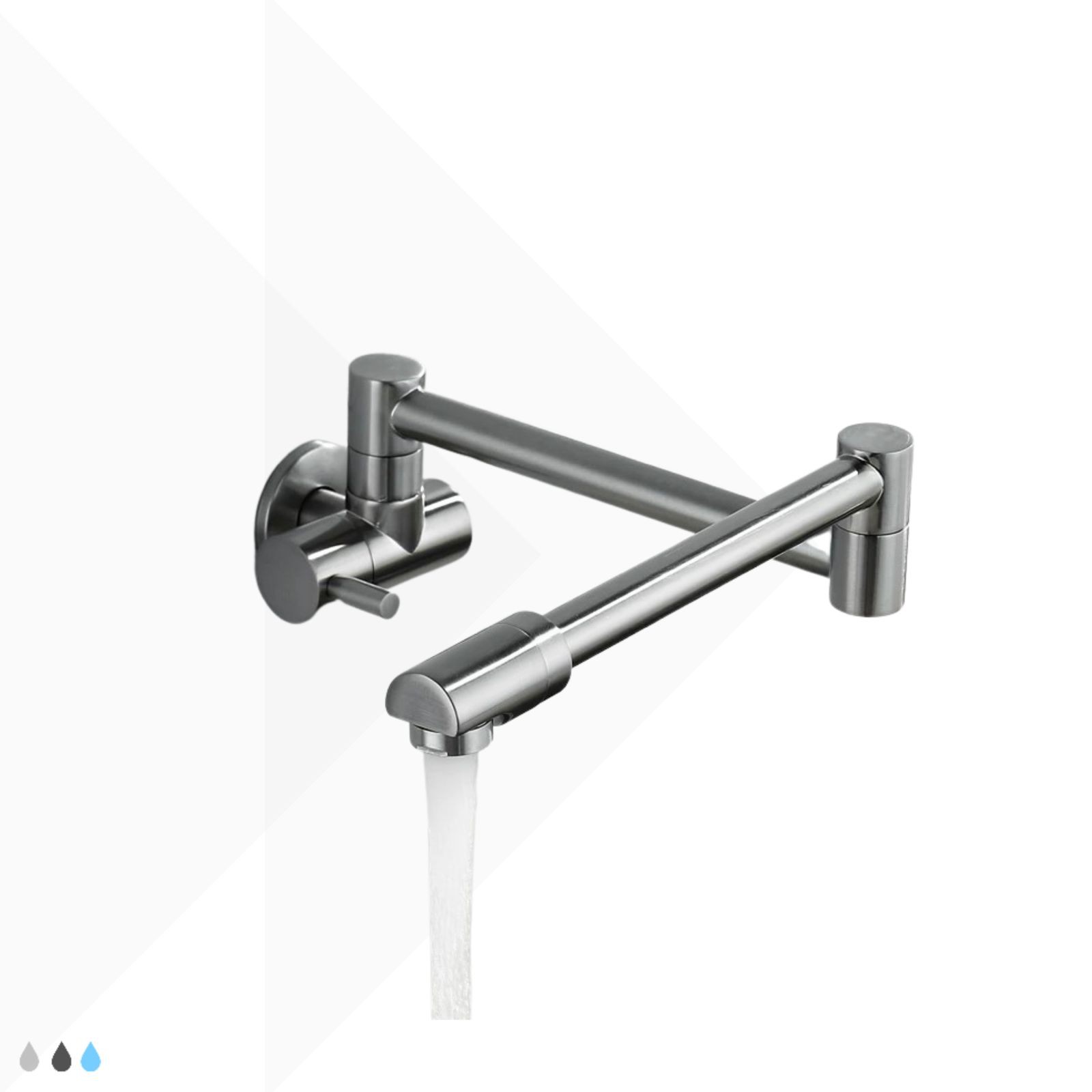 A Torneira Gourmet Articulada de Parede Tallin, possui acabamento escovado, e foi projetada para uso em cozinhas, copas ou áreas gourmet. Com um design moderno e robusto, e corpo flexível que gira em 360° de maneira articulada conforme a foto, facilita assim a lavagem de alimentos e utensílios de forma mais prática e controlada.