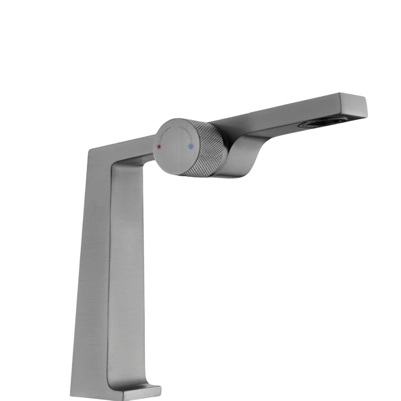 Torneira Mikonos, uma peça de destaque que une sofisticação e funcionalidade em um design contemporâneo. Esta elegante torneira é projetada para oferecer o máximo de conforto e estilo, combinando materiais de alta qualidade com um comando progressivo para controle preciso da temperatura e do fluxo de água.
