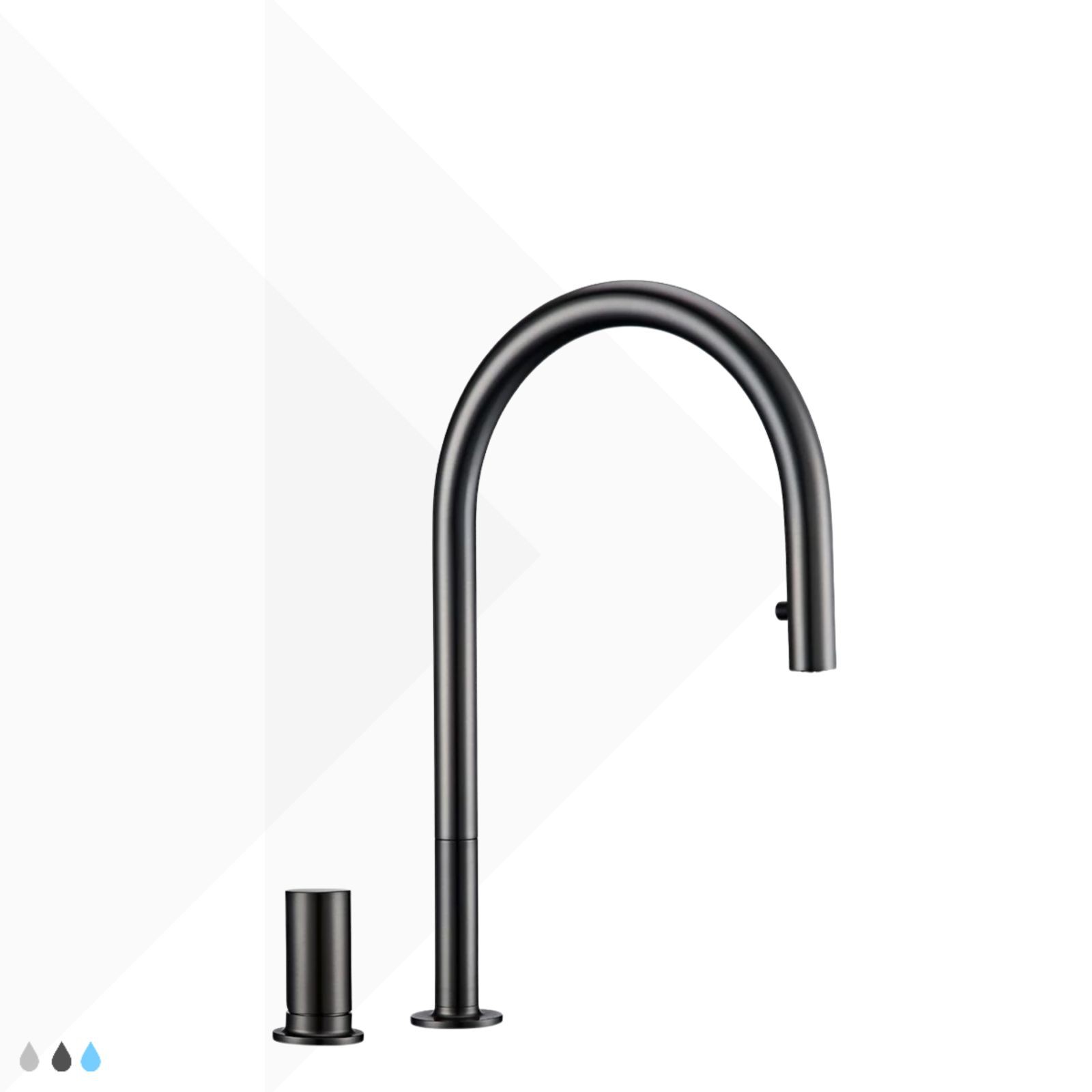 A Torneira Monocomando Gourmet Manopla separada, possui um design minimalista e contemporâneo com acabamento fosco na cor Grey (Grafite). Foi projetada para oferecer liberdade na criação do seu ambiente.