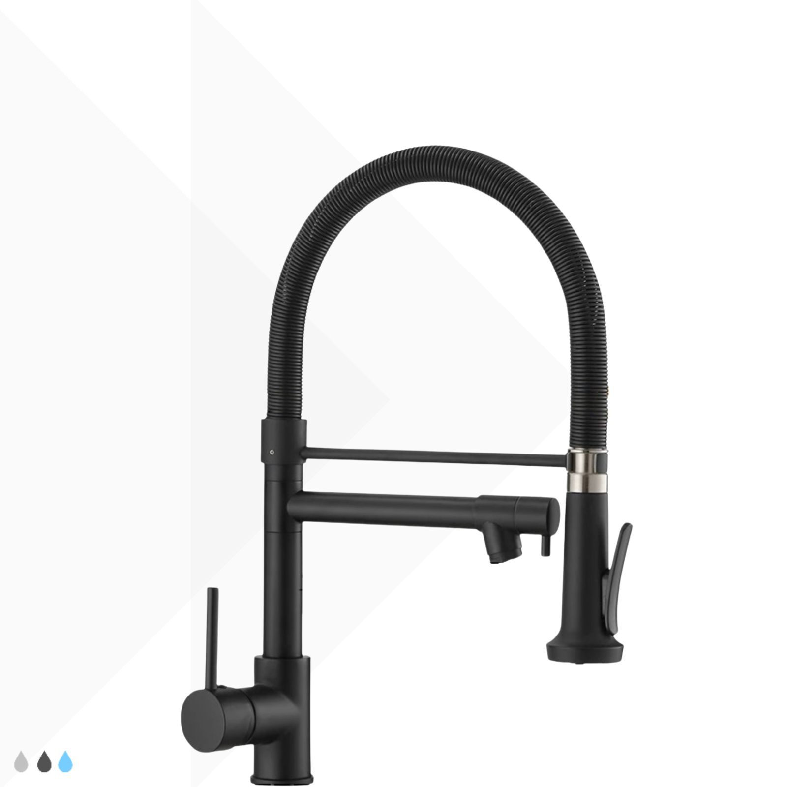 A Torneira Monocomando Navan, possui ótima funcionalidade pois além da bica principal, possui uma bica com chuveirinho (spray). Ambas as bicas são giratórias e por isso facilitam o manuseio de panelas e utensílios além de facilitar a limpeza da própria cuba. Além disso, você pode conectar um filtro na bica principal e deixá-la com água filtrada para consumo, economizando espaço e facilitando seu dia-a-dia.
